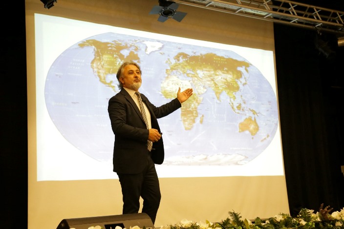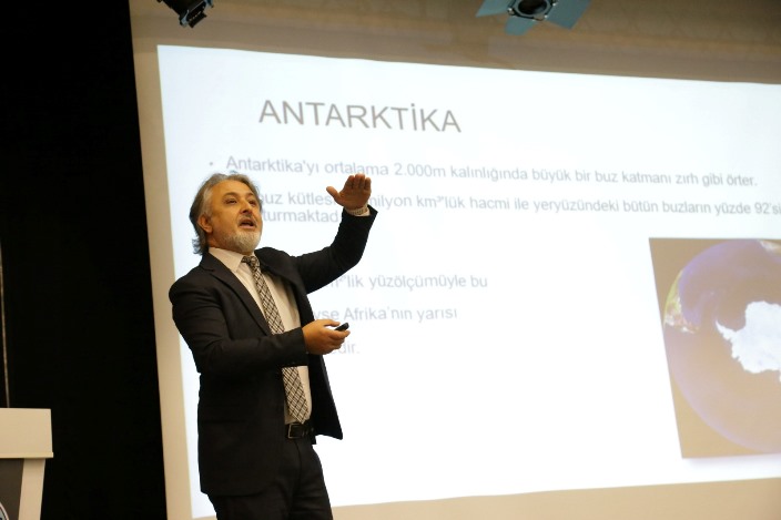 Antartika öyle bahtsız bir yer ki 2 milyon yıldır yağmur yağmamış kuru bir kıta. Antartika o kadar büyük bir yer ki Türkiye’nin 17 katı ve Avrupa’nın yaklaşık bir buçuk katı büyüklüğünde bir kıtadan bahsediyorum. Siz dünya haritasına baktığınızda ülkenizin 17 katı büyüklüğünde bir kıtanın dünyanın altında bulunduğunu fark ettiniz mi? Öyle bir kıta ki üzerinde bulundurduğu yapı itibariyle 2 bin metre ortalama yer kürenin üzerinde buz var ve bu buz yaklaşık 24 milyon kilometreküplük bir buzula tekabül ediyor. Dünya tatlı su rezervi burası; dünyadaki tatlı suyun %92’sine karşılık geliyor. Antartika bir kara kutu, dünyanın kara kutusu. Eğer dünyanın geçmişini, insanlığın tarihini öğrenmek istiyorsanız Antarktika’yı çözmeniz gerekiyor. Bu buzun her katmanındaki yapıyı tespit etmeniz gerekiyor.