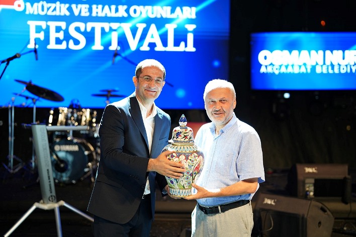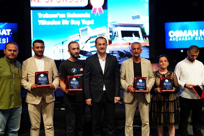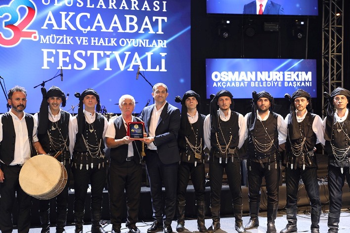 32. Uluslararası Akçaabat Müzik ve Halk Oyunları Festivali’ne katkı ve destek veren tüm sponsorlar sahneye davet edilerek kendilerine Akçaabat Belediye Başkanı Osman Nuri Ekim tarafından plaket verildi.