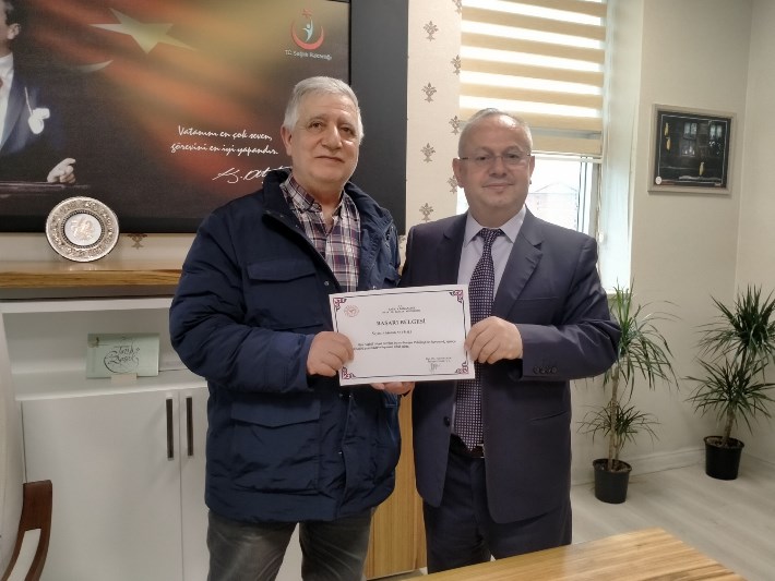 Sağlık Müdürlüğü tarafından sigarayı bırakanlara Sağlık Müdür Yardımcısı Opr.Dr. Talip Başak tarafından Başarı Belgesi verildi.