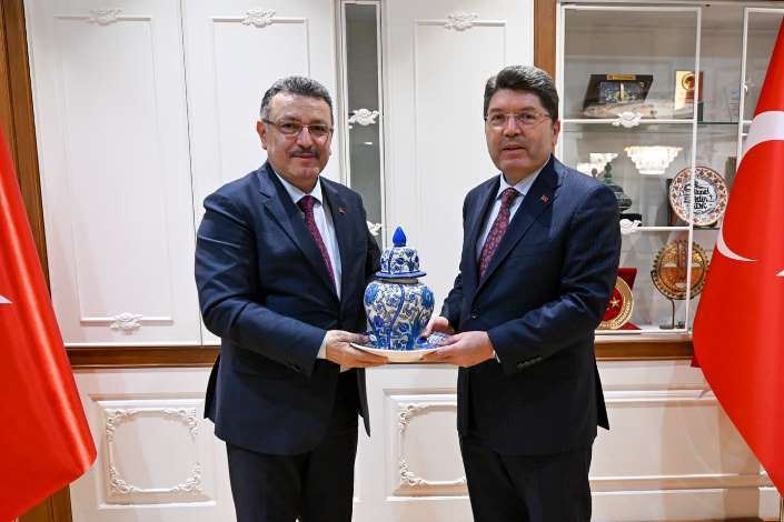 Şehirde devam eden projeler ve planlanan yatırımlar hakkında Bakan Tunç’a bilgi veren Başkan Ahmet Metin Genç, merkezi hükümetle yürütülen iş birliğinin Trabzon’un gelişiminde önemli bir rol oynadığını vurgulayarak, “Sayın Bakanımızı şehrimizde ve belediyemizde ağırlamaktan büyük memnuniyet duyduk. Trabzon’un bugün geldiği noktada merkezi idaremizle kurduğumuz güçlü iş birliğinin çok önemli bir payı var. Özellikle adalet hizmetlerinde modern yapılara kavuşma ve personelimizin ihtiyaçlarının giderilmesi noktasında Adalet Bakanlığımızın destekleri bizlere güç vermektedir. Şehrimizin her adımını daha güvenli, daha hızlı ve daha nitelikli hizmet anlayışıyla atmak için çalışıyoruz. Kıymetli Bakanımıza Trabzon’a gösterdiği yakın ilgi ve katkılarından dolayı şahsım ve hemşehrilerim adına teşekkür ediyorum” dedi. Bakan Tunç da, Türkiye genelinde olduğu gibi Trabzon’da da adalet hizmetlerinin en iyi şekilde yürütülmesi için desteklerinin süreceğini ifade etti. Ziyaretin sonunda Başkan Genç, Bakan Tunç’a Trabzon’un kültürel mirasını temsil eden bir ibrik ile Trabzonspor forması hediye etti.