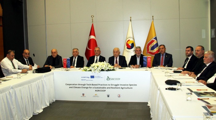 Toplantıda; istilacı yabancı türler (IAS) ve iklim değişikliğinin tarımsal üretim üzerindeki olumsuz etkilerine karşı ortak, yenilikçi ve teknoloji temelli çözümler amaçlayan AGRICOOP Projesi kapsamında çözüm ve öneriler dile getirildi.