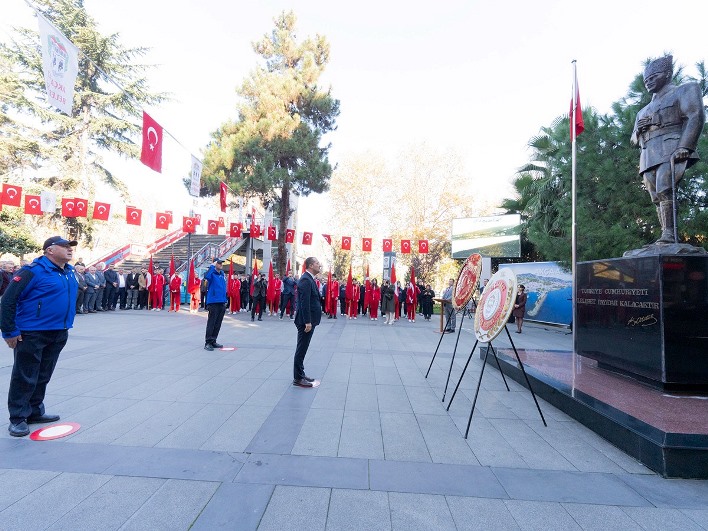 Saygı duruşu ve İstiklal Marşı’nın okunmasıyla başlayan program, Akçaabat Kaymakamlığı ve Akçaabat Belediye Başkanlığı çelenklerinin Atatürk Anıtı’na sunulmasıyla devam etti.