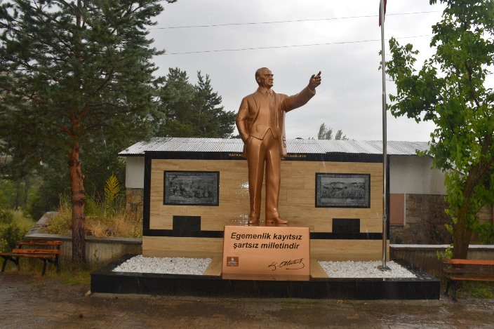 Bugüne kadar köyde yapılan en güzel Atatürk Büstünü orada gördüm ve fotoğrafladım. Şehrin en hakim yüksek tepesine Atatürk çeşmesi yapmışlar Çeşmeden su içmek bir yana insanlar çeşme etrafında dinleniyor.