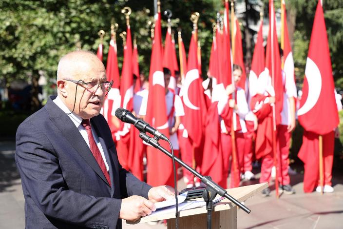 Büyükşehir Belediye Başkan Vekili Ahmet Yüksel Gülay, “Bugün burada, Gazi Mustafa Kemal Atatürk'ün Trabzon'umuzu teşrif edişinin 101. yıldönümünü kutlamanın onurunu ve heyecanını yaşıyoruz. Bugün, sadece bir ziyaretin yıldönümü değil; tarihimizin altın sayfalarına yazılmış bir onur günüdür. Bugün, milletin kaderini milletin azmiyle yeniden yazan bir liderin, Karadeniz'in hür dalgalarıyla buluştuğu gündür. Atatürk, 15 Eylül 1924'te bu kadim şehre adım attığında, sadece bir devlet adamı olarak değil, milletin kalbinde taht kurmuş bir lider olarak Trabzonlular tarafından bağrına basıldı. O gün bu şehirde dalgalanan Türk bayrakları, yalnızca bir karşılama değildi; Cumhuriyet'e, bağımsızlığa ve aydınlık yarınlara verilen bir sözdü. Trabzon, tarih boyunca sadece Karadeniz'in değil, Anadolu'nun da direniş kalesi olmuştur. Milli Mücadele günlerinde gösterdiğimiz cesaret ve fedakârlık, Atatürk'ün gözünde bu şehri çok özel bir yere taşımıştır” dedi.