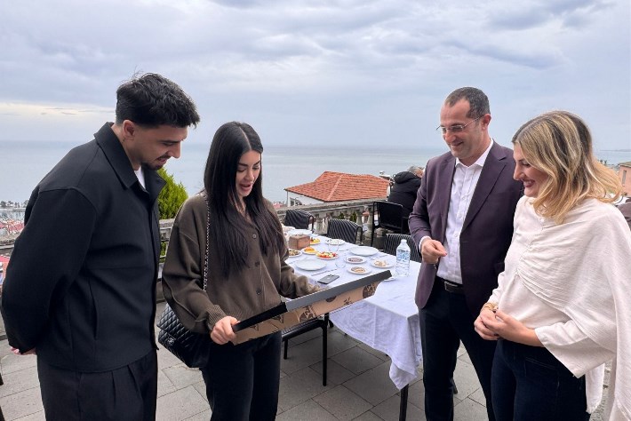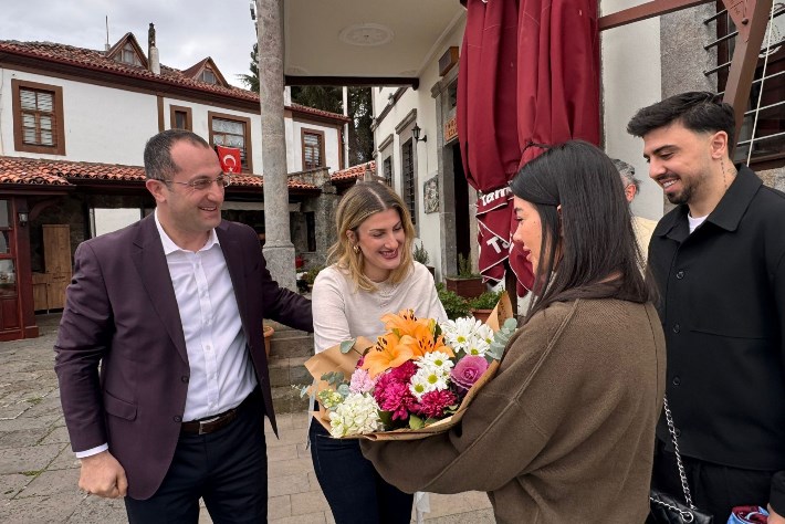 Akçaabat’ın tarihi ve kültürel mirasının önemli mekânlarından biri olan konakta gerçekleşen buluşmada samimi bir sohbet ortamı yaşandı. Başkan Ekim, ilçenin köklü geçmişi, kültürel değerleri ve yürütülen çalışmalar hakkında Ozan Tufan ve Rojin Tufan’a bilgiler verdi.