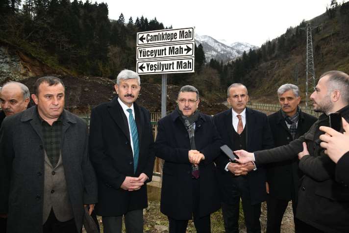 Trabzon Büyükşehir Belediye Başkanı Ahmet Metin Genç, Araklı’da 2019 yılında meydana gelen heyelan nedeniyle afet bölgesi ilan edilen Çamlıktepe Mahallesi’nde incelemelerde bulundu. Araklı Belediye Başkanı Hüseyin Avni Coşkun Çebi, Karayolları 10. Bölge Müdürü Mehmet Aşık, AK Parti İlçe Başkanı Ahmet Serdan ve diğer ilgililerin eşlik ettiği Başkan Genç, “2019’daki afet sonrası Cumhurbaşkanımız Sayın Recep Tayyip Erdoğan nezdinde önemli çalışmalar yapıldı. Karayolları, DSİ, Büyükşehir ve Araklı belediyeleri birlikte çalışıyor. İki mahallemizin yollarının istinat çalışmalarını yapıyoruz. Bu çalışmalarımız tamamlandığında yolların üst yapısını da yapıp Çamlıktepe ve Yüceyurt mahallelerimizin ulaşımını kolaylaştıracağız. Çalışmaları en hızlı şekilde tamamlamayı hedefliyoruz. Şimdiden hayırlı olsun. Afette hayatını kaybeden vatandaşlarımızı rahmetle anıyoruz” dedi.