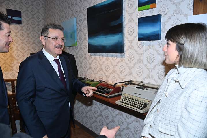 Başkan Genç daha sonra, Basın Tarihi Müzesi’nde Ortahisar Belediyesi tarafından düzenlenen ‘Kesişen Dünyalar’ adlı resim ve özel sergi etkinliğine katıldı. Gazeteci Fethi Yılmaz’ın, 1865 yılından günümüze kadar olan Osmanlı, Milli Mücadele ve Cumhuriyet dönemlerini anlatan 47 özel dergi arşivi ile ressamlar Zeynep Bayrak ve Edanur Melek’in 30 eserinden oluşan resim sergisi büyük ilgi gördü. Etkinliğe Başkan Genç’in yanı sıra, Ortahisar Belediye Başkanı Ahmet Kaya, Ortahisar Kaymakamı Ahmet Tezcan, TTSO Başkanı Erkut Çelebi, AK Parti Ortahisar İlçe Başkanı Seyit Hisoğlu ve çok sayıda davetli katıldı. Başkan Genç, “Hakikaten gazetecilik çok önemli bir meslek. Şehrin veya ülkenin gündeminin oluşmasında, vatandaşlarımızın doğru habere hızlı bir şekilde erişmesinde basın çalışanlarımızın büyük emeği var. Demokratik sistem yönetimlerinde, yasama, yürütme ve yargıdan sonra basın dördüncünbüyük güç olarak görülen bir alan. Çok büyük fedakarlıklar gerektiren bir alan. Bu vesileyle şehrimizde bu minvalde çalışan, emek verip ahirete irtihal eden bütün gazetecilerimizi rahmetle, minnetle anmak istiyorum. Allah mekanlarını cennet eylesin inşallah. Bu şehre katkı sağladılar, bu şehrin kültürüne ve sanatına katkı sağladılar” dedi. Konuşmaların ardından Başkan Genç ve beraberindekiler sergiyi gezdi.
