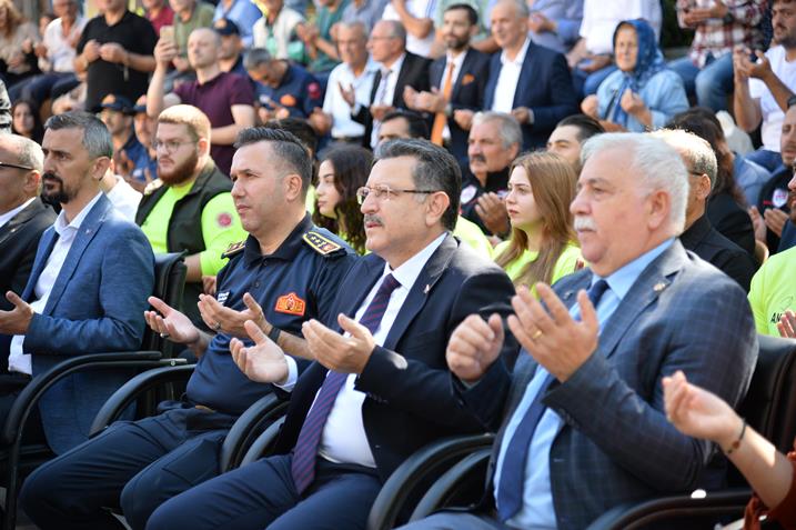 Çok sayıda vatandaşın katıldığı programda konuşan Başkan Ahmet Metin Genç, “İtfaiye teşkilatımız bütün insanlarımızın can güvenliğini korumak için, afete maruz kalanlar başta olmak üzere o andan itibaren cansiperane bir şekilde çalışan, gayret gösteren bir teşkilat. 300 yılı aşan tecrübeye sahip çok kıymetli teşkilatımız. Bir canı kurtarmak için canını ortaya koyan teşkilatımız. Böyle çalışan, gayret gösteren önemli bir birimimiz. İtfaiye denince ilk başlangıçta akla yangın geliyor. Can güvenliğini doğrudan ilgilendiren bir durum ama depremde, selde, her türlü felakette de canını ortaya koyarak müdahale eden birim. Trabzon'umuzda da 18 ilçemizde 21 itfaiye istasyonumuz var. 270 mesai arkadaşımız, tabiri caizse elini, bedenini, yüreğini taşın altına koyarak afete maruz kalan vatandaşımızın yanında olup onların can güvenliğini temin etmek için büyük bir gayreti ortaya koyuyor. 76 aracımızla beraber bu konuda imkan ve kabiliyet itibariyle de mütekamil durumdayız. Biz bunu da yeterli görmüyoruz. Göreve gelir gelmez hem Çarşıbaşı ilçemizde hem Araklı ilçemizde ayrı iki tane itfaiye merkezi oluşturuyoruz” dedi.