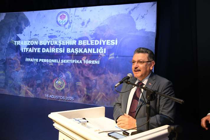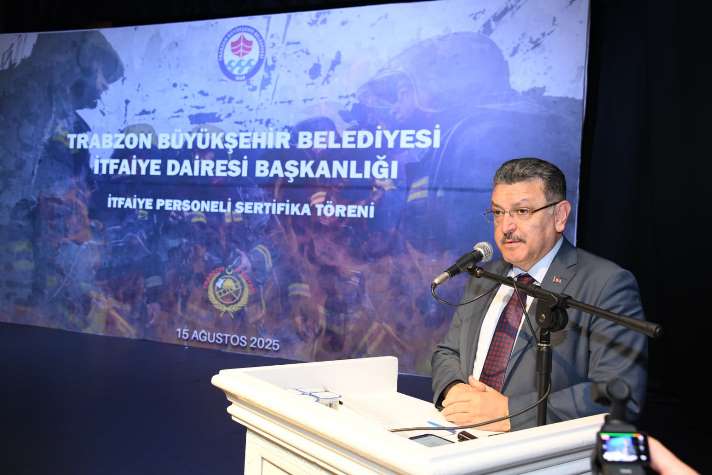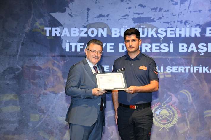 Trabzon Büyükşehir Belediye Başkanı Ahmet Metin Genç, İtfaiye Dairesi Başkanlığı bünyesinde çalışmak için eğitim alan itfaiye personelinin sertifika törenine katıldı. Başkan Genç, “Yeni vazifesine başlayan bütün kardeşlerime yürekten başarılar diliyorum. Belediye olarak birçok işle ilgileniyoruz. Halkımızın yaşam standardını daha yukarılara çekmek, daha iyi yaşamalarını sağlamak gibi görevimiz var. Her sorunun muhatabıyız, hizmet etmeye çalışıyoruz ama en önemli çalışma alanlarından bir tanesi halkımızın can güvenliğini ilgilendiren hizmetler. Bu manada öne çıkan en önemli birimimiz itfaiyemizdir” dedi.