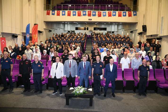 Konuşmaların ardından, 4 aylık deneme süresini başarıyla tamamlayan 3’ü kadın, 67’si erkek olmak üzere toplam 70 itfaiye personeline sertifikaları verildi.