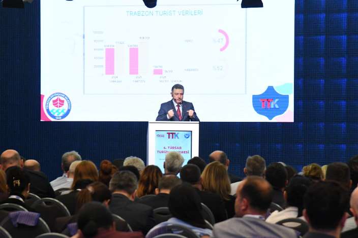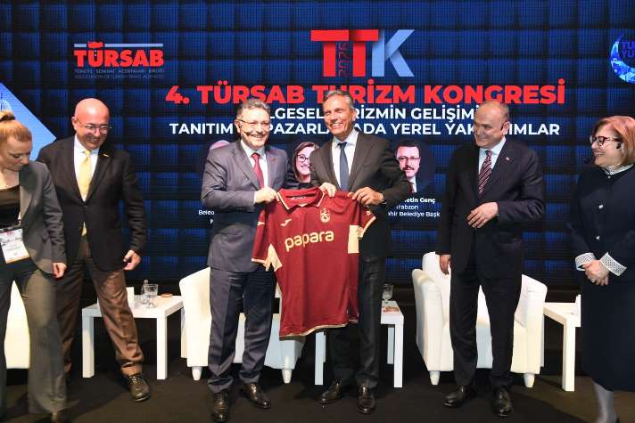 Trabzon Büyükşehir Belediye Başkanı Ahmet Metin Genç, ‘Eğitim, İletişim ve Dayanışma’ mottosuyla Antalya’da bu yıl 4’üncüsü düzenlenen TÜRSAB Turizm Kongresi’ne katıldı. Kongre kapsamında gerçekleştirilen ve Düzce Belediye Başkanı Faruk Özlü’nün moderatörlüğünü yaptığı “Bölgesel Turizmin Gelişimi, Tanıtım ve Pazarlamada Yerel Yaklaşımlar” başlıklı programda Başkan Genç, Gaziantep Büyükşehir Belediye Başkanı Fatma Şahin ve Safranbolu Belediye Başkanı Elif Köse konuşmacı olarak yer aldı. Programda konuşan Başkan Genç, turizmde yerel yönetimlerin rolüne dikkat çekerek, “Trabzon, eşsiz doğal güzellikleriyle yeşilin maviyle buluştuğu, tarihi medeniyetlerin iz bıraktığı, kültür ve sanatla yoğrulmuş bir şehirdir. Metrekaresine en fazla sanatçının düştüğü şehirlerden biri olarak, hem tarih ve kültürü hem de doğal güzellikleriyle turizm trendine hızla uyum sağlamaktadır. Trabzon Büyükşehir Belediye Başkanı olarak görevlerim sadece altyapı ve belediyecilik hizmetleriyle sınırlı değildir; aynı zamanda şehrimizin ekonomisini, istihdamını ve yatırım potansiyelini de dikkate almak zorundayım. Bu bağlamda turizm, şehrimizin stratejik önceliklerinden biridir” dedi.