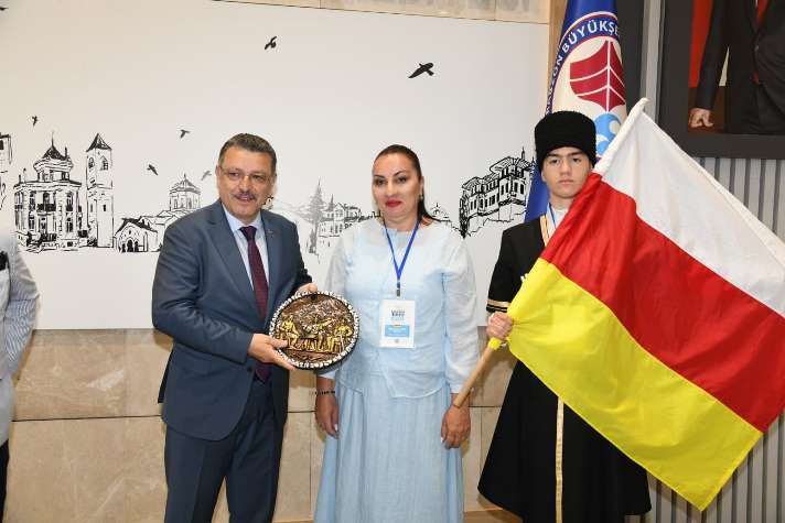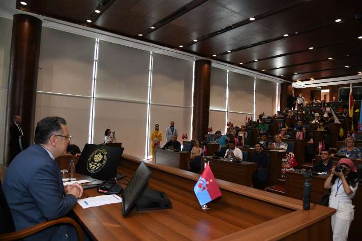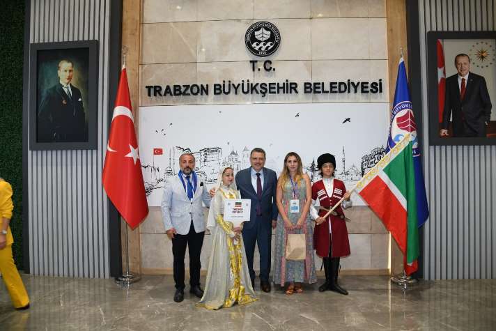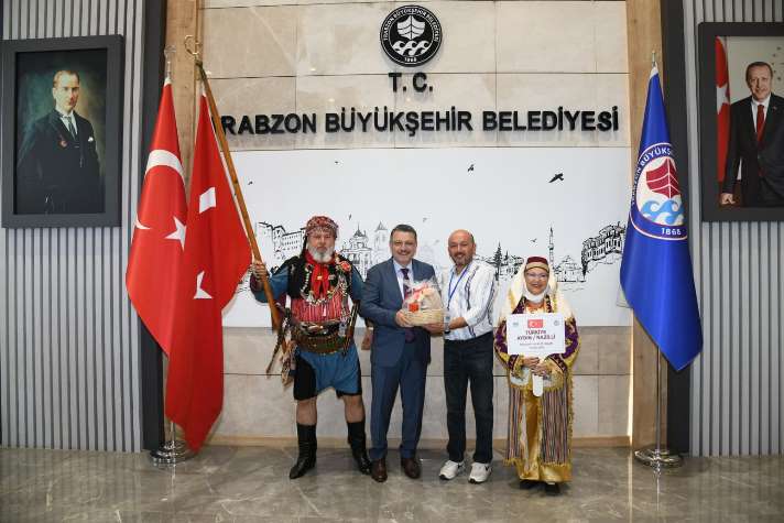 Trabzon Büyükşehir Belediye Başkanı Ahmet Metin Genç, bu yıl üçüncüsü düzenlenen Uluslararası Horon ve Müzik Festivali'ne katılan 5 kıtadan 36 ülkenin temsilcilerini Büyükşehir Belediyesi Meclis Salonu’nda ağırladı. Başkan Genç, salonun adeta 'dünya meclisi'ne dönüştüğünü ifade ederek, “Dünyanın 5 kıtasından, farklı kültürlerden gelen misafirlerimizle Trabzon’da bir aradayız. Bu festival yalnızca kültürel bir etkinlik değil; halk oyunlarının, müziğin ve kültürlerin buluştuğu evrensel bir sahne. Burada aynı zamanda dünya barışına da güçlü bir mesaj veriyoruz” dedi.