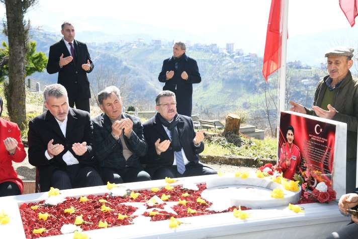 Trabzon Büyükşehir Belediye Başkanı Ahmet Metin Genç, Ramazan ayı dolayısıyla gerçekleştirdiği ziyaretler kapsamında şehit aileleri ve gazilerle bir araya gelmeye devam ediyor. Başkan Genç, 7 Nisan 2021’de Konya’da eğitim uçuşu sırasında Türk Yıldızları’na ait uçağın düşmesi sonucu şehit olan Trabzonlu Hava Pilot Yüzbaşı Burak Gençcelep’in Ortahisar ilçesine bağlı Bulak Mahallesi'ndeki kabrini ve ailesini ziyaret etti. Ziyarette AK Parti Trabzon İl Başkanı Sezgin Mumcu ve İl Kadın Kolları Başkanı Ayfer Cihan da yer aldı. Şehit ailelerinin ve gazilerin asla yalnız olmadıklarını belirten Başkan Genç, "Şehitlerimizin aziz hatıralarına ve emanetleri olan ailelerine sahip çıkmak bizim en önemli görevimizdir" dedi.