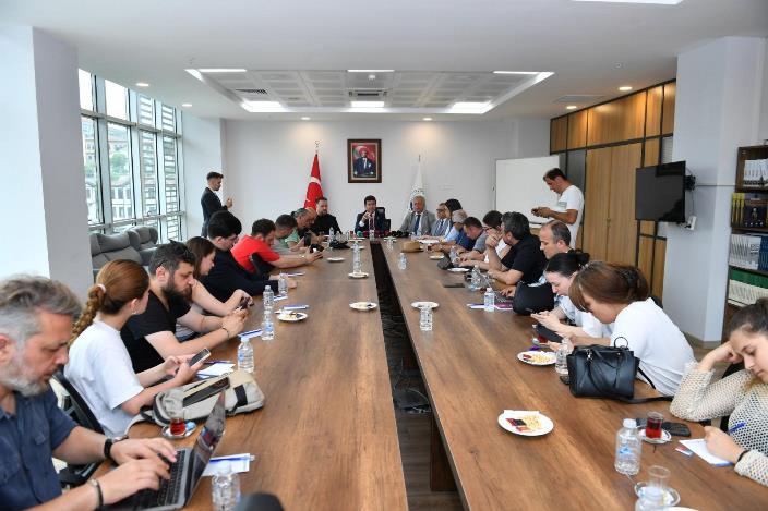 Başkan Kaya, toplantının sonunda gazetecilerle birlikte fotoğraf çektirdi.