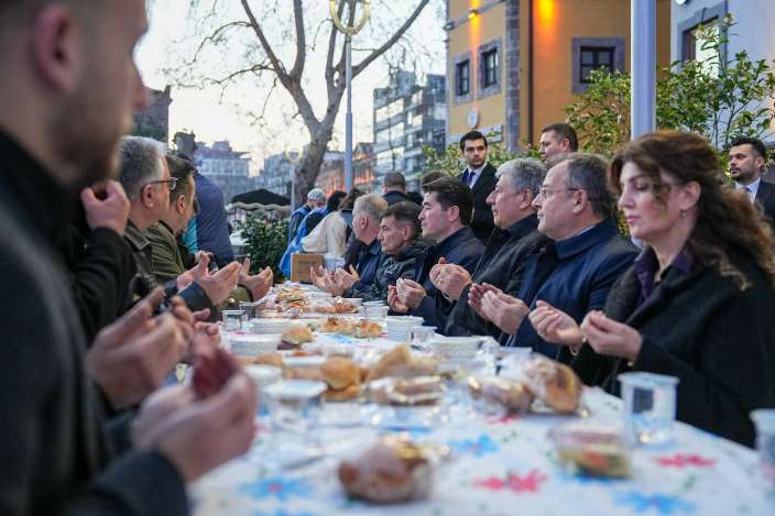 Ortahisar Belediye Başkanı Ahmet Kaya, Ortahisar Eğitim Derneği tarafından düzenlenen ‘Türkiye’nin Geleceği’ konulu konferansta konuşmak üzere Trabzon’a gelen önceki dönem CHP Milletvekili ve Cumhuriyet Gazetesi Yazarı Mustafa Balbay ile birlikte İskenderpaşa Kent Lokantası’nda iftar yaptı. Ortahisar Belediye Başkan Yardımcıları Celal Akaç, Mustafa Özer İskender ve Ernul Arslan, CHP’nin Cumhurbaşkanı Adayı Ekrem İmamoğlu’nun danışmanları Müslüm Akülker ve İbrahim Özkan, CHP Trabzon İl Başkanı Mustafa Bak, CHP Ortahisar İlçe Başkanı Haluk Batmaz, CHP Trabzon İl Gençlik Kolları Başkanı Oğulcan Çavuşoğlu ve çok sayıda vatandaş katıldığı iftar programında Başkan Kaya ve Balbay, vatandaşlarla tek tek selamlaştı, Ramazanlarını tebrik ederek ‘iyi iftarlar’ diledi. Ramazan’ın manevi huzurunun yaşandığı iftar programında birlikte dualar edildi, okunan ezanın ardından oruçlar açıldı. İftarın ardından vatandaşlarla çay içerek sohbet eden Başkan Kaya ve Mustafa Balbay, daha sonra konferansa katılmak üzere Kent Lokantası’ndan ayrıldı.