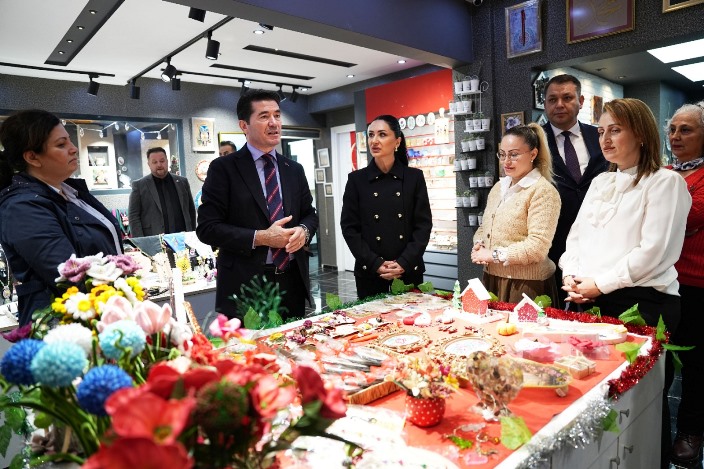 Başkan Kaya ve eşi Tuba Kaya, çarşıda üretilen dokuma çantalar, el örgüsü çantalar, epoksi ürünler, sepetler, keçe sanatı, filografiler, yöresel kıyafetler, tanzimler, yöresel pazen yelekler, keçe tablolar, tasarım ürünler ve geri dönüşüm malzemelerinden üretilmiş hediyelik eşyalar gibi çok çeşitli el emeği ürünleri büyük bir beğeniyle inceledi ve üretici kadınları tebrik etti.
