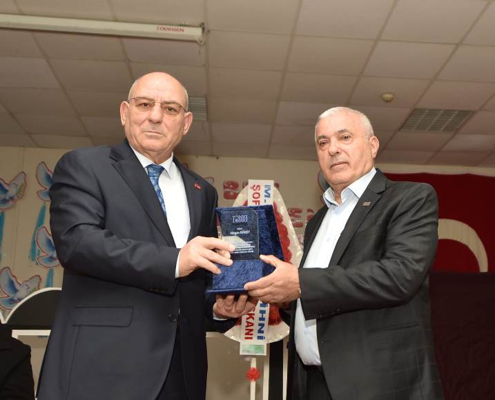 TESOB Başkanı Metin Kara, Beşikdüzü Esnaf ve Sanatkarlar Odası başkanlığı görevini 3 dönemdir yürüten ve son genel kurulda aday olmayan Hüseyin Günaçtı'ya da plaket takdim etti ve hizmetleri nedeniyle teşekkür etti.
