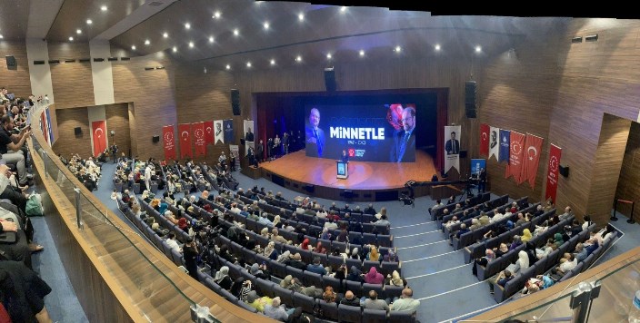 Programın son kısmında Prof. Dr. Haydar Baş’ın konuşmalarından kesitleri içeren bir sinevizyon sunuldu. O sırada tüm salonda duygusal anlar yaşandı.