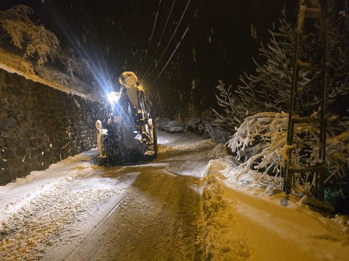 Trabzon’da etkisini artıran kar yağışı nedeniyle Trabzon Büyükşehir Belediyesi ekipleri kent genelinde teyakkuza geçti. Büyükşehir Belediyesi’nden yapılan açıklamada, karla mücadele çalışmalarının 18 ilçede aralıksız sürdüğü belirtilerek, “İlimiz genelinde etkisini artıran kar yağışı nedeniyle tüm birimlerimizle sahadayız. Karla mücadele ekiplerimiz 18 ilçede aralıksız görev yapmaktadır. Ana yollarda herhangi bir kapanma yaşanmazken, 50 mahalle yolu ulaşıma kapalı durumdadır. Söz konusu yolların ulaşıma açılması için ekiplerimiz çalışmalarını sürdürmektedir. İl genelinde elektrik kesintisi ile haberleşme/fiber kesintisi (santral bazında) bulunmamaktadır” denildi.