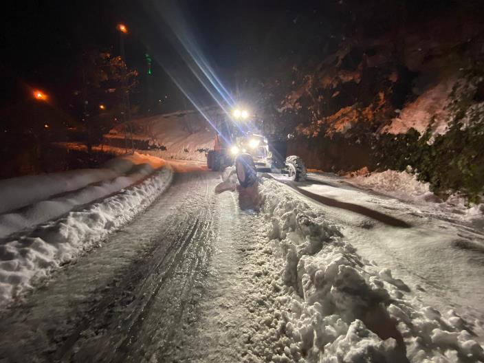 Trabzon Büyükşehir Belediyesi Yol Yapım, Bakım ve Onarım Dairesi Başkanlığı ekiplerinin karla mücadele çalışmaları aralıksız sürüyor. Kar küreme ve tuzlama ekipleri sabaha kadar görev yaptı. Özellikle yüksek kesimlerde ulaşımın aksamaması için yoğun gayret sarf eden ekipler, kapalı bulunan 133 mahalle yolundan 84'ünü ulaşıma açtı.