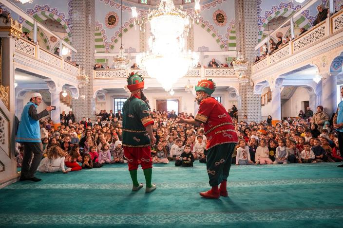 Trabzon Büyükşehir Belediyesi tarafından “Trabzon’da Ramazan Paylaşınca Güzel” mottosuyla düzenlenen Ramazan etkinlikleri, şehrin dört bir yanında 7’den 70’e tüm vatandaşların yoğun katılımıyla devam ediyor. Birlik, beraberlik ve dayanışma duygularının en güçlü şekilde hissedildiği Ramazan ayı boyunca gerçekleştirilen programlar, özellikle çocuklara yönelik içerikleriyle büyük beğeni topluyor. Ramazan ayının manevi atmosferini küçük yaşlardan itibaren çocuklara hissettirmeyi amaçlayan etkinliklerde; yüz boyama, Nasrettin Hoca gösterileri, Hacivat-Karagöz performansları ve çeşitli atölye çalışmaları yapılıyor. Pazarkapı’daki etkinlik çadırında her gün gerçekleştirilen çocuk programlarında minikler hem eğleniyor hem de Ramazan’ın paylaşma, sabır ve yardımlaşma gibi değerlerini öğreniyor.