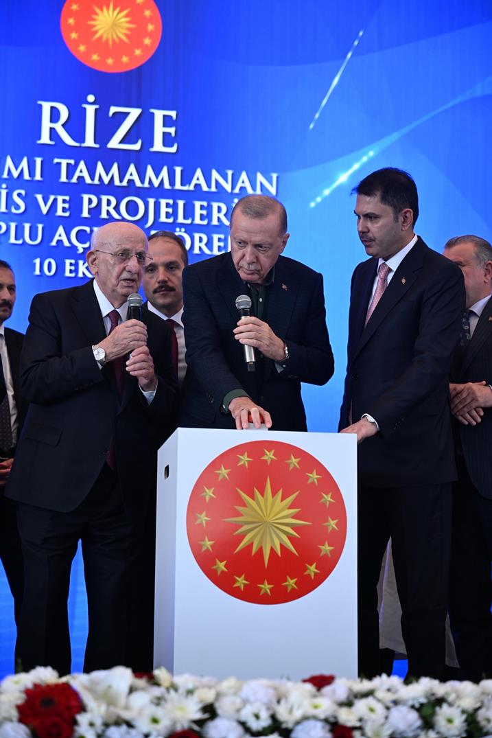 Cumhurbaşkanı Erdoğan açıklamasında, “Dünya değişir, zaman değişir... Bizim size ve milletimize olan sevdamız, tutkumuz değişmez. İşte bugün buraya gelirken yine elimiz boş gelmedik. Rize’ye yine hizmetlere geldik. Yeni açılışlarla geldik. Bugün toplam 38 projemizin toplu açılışını, 2 projemizin de temel atmasını gerçekleştiriyoruz. Toplam yatırım değeri 3 milyar 84 milyon lirayı geçen bu eserleri Rizeli hemşerilerimizin hizmetine vermenin gururunu yaşıyoruz.” dedi.