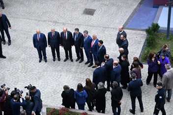 Kuzey Kıbrıs Türk Cumhuriyeti Cumhurbaşkanı Ersin Tatar da Trabzonluların hep sevgisini ve muhabbetini gördüğünü belirterek şunları kaydetti: “Bugün sizlerle kadim şehir Trabzon’da beraber olmaktan büyük bir mutluluk duymaktayım. Hepinize şahsıma gösterdiğiniz bu yakın ilgi ve alakadan dolayı çok teşekkür ediyorum. Biz hep Doğu Akdeniz’deki Türk devleti KKTC’den Anadolu’ya baktığımızda daha da uzaklara Trabzon’a baktığımızda hep sizlerin sevgisini, muhabbetini gördük. Çünkü bizim yüreğimiz bir, kalbimiz bir, gönlümüz bir, aynı milletlerin evlatları olarak bu topraklarda mücadele vermenin gururu içindeyiz. Trabzon denince 1453 İstanbul’un fethinden sonra yine Fatih Sultan Mehmet 8 yıl sonra 1461’de buraların fethini gerçekleştirdi. Burası Anadolu’nun parçası ve 1571’de Padişah ikinci Selim Lala Mustafa Paşa, Canbolat Paşa, Kıbrıs’ın fethiyle bizleri bir bakıma birleştirdiler. İşte böylesine bir tarih. Beş yüzyıllık bir tarihte bizler bir bütün olarak Karadeniz’den Akdeniz’e uzanan bu coğrafyanın yöneticileri olarak halkımızın geleceği için şimdilerde bu çağdaş değerlerde geleceğe yürüyoruz. Onun için de Trabzon’dan bir kez daha 1974’ten sonra KKTC’ye giden ve orada torunlarının torunlarıyla KKTC’nin geleceği için mücadele eden sizlerin hemşehrilerini selâmlıyorum. Bugün benim danışmanın olan Mesut Genç, eski milletvekilimiz benimle birlikte. Onun ailesi de Trabzon’dan oralara yerleşmiş ve şu anda Mesut Genç benim danışmanın. Böylesine çok değerli isimler şu anda bizimle bu mücadeleyi vermektedir.” şeklinde konuştu.