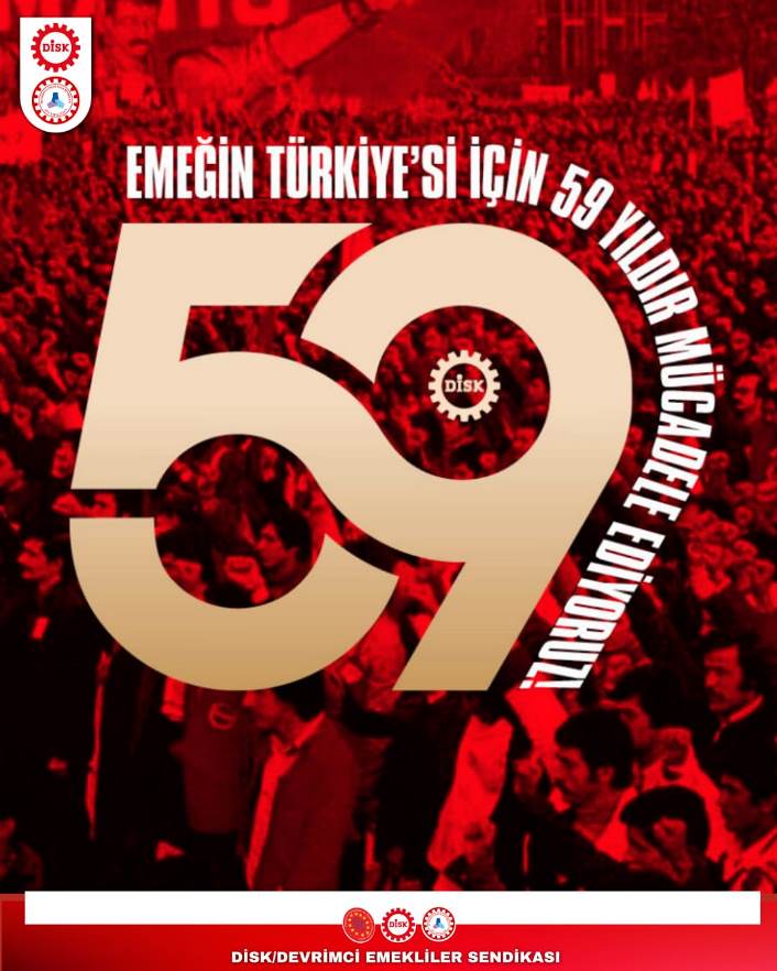 Bugün burada Konfederasyonumuz DİSK’in 59. kuruluş yıldönümü için bir aradayız. Sizleri, Türkiye Devrimci İşçi Sendikaları Konfederasyonu’nun 59. yılında birlik, mücadele ve dayanışma duygularımızla sevgiyle, saygıyla, umutla selamlıyorum.