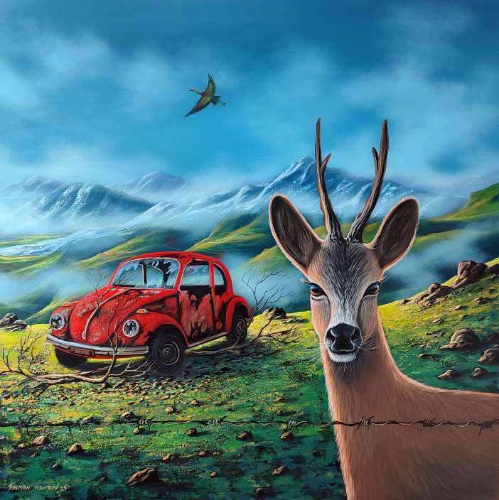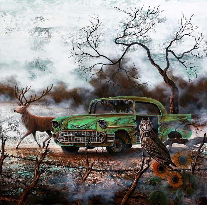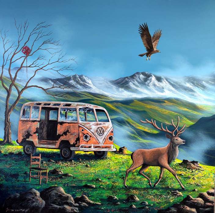 Uzun, kuruyan bir dalda insanın kırılganlığını; bir kuşun kanadında kaybolan özgürlüğü; doğanın sustuğu yerde yankılanan iç sesi görünür kılıyor. Tuval, insanla doğa arasındaki kadim bağın yeniden kurulma çabasının tanığına dönüşüyor.