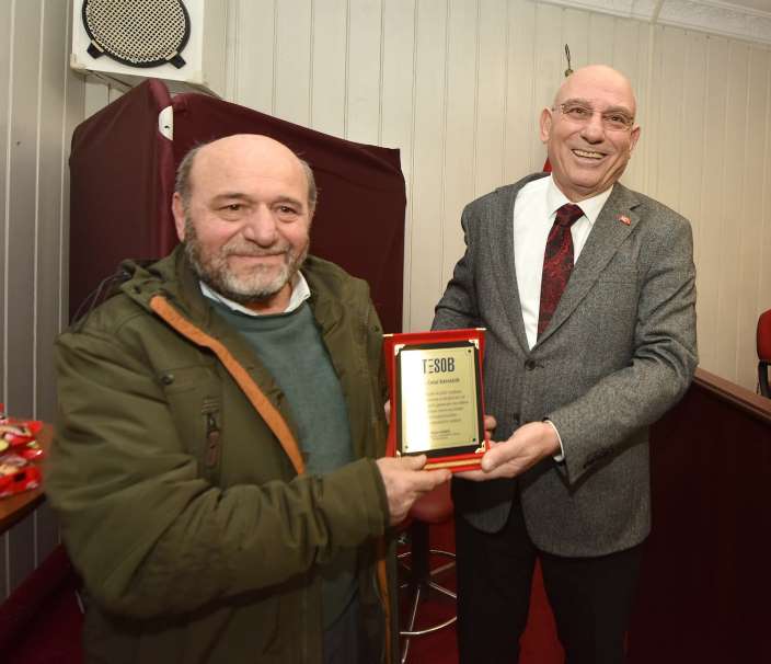 Başkan Kara konuşmasının ardından 2025 yılında Trabzon’da yılın çırağı seçilen 15 yaşındaki ayakkabı imalatçısı Eren Bahadır’ın ustası ve dedesi Celal Bahadır’a, mesleğe ve Ahilik Haftası kutlamalarına yaptığı katkı nedeniyle plaket takdim etti.