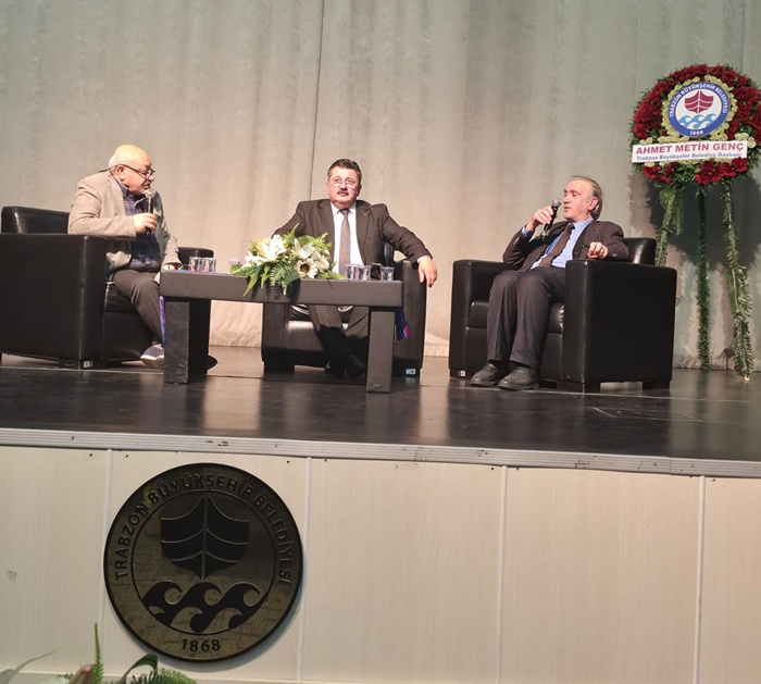 Karadeniz Yazarlar Birliği ve Trabzon Büyükşehir Belediyesi'nin işbirliği ile Hamamizade İhsan bey kültür merkezindeki etkinlikte moderatör olarak Karadeniz Yazarlar Birliği Başkanı Sebahattin Saruhan 'ın söyleşi sohbet konukları, Gazeteci Nevzat Yılmaz ve Aydın Akdeniz idi.