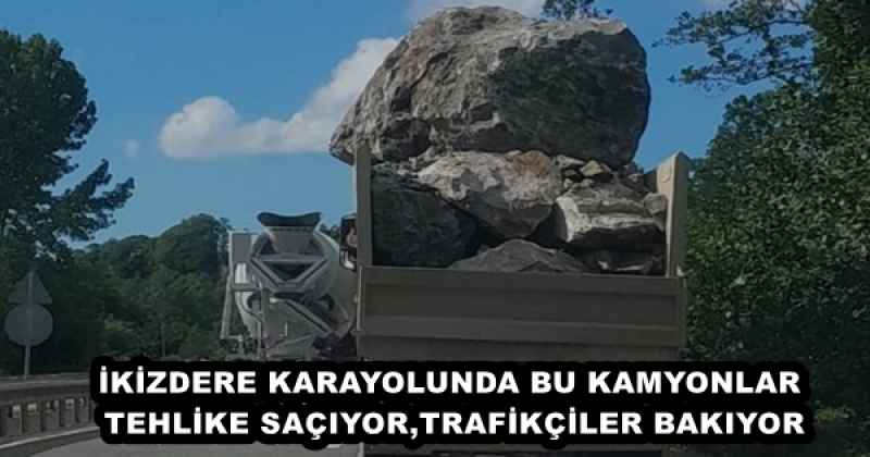İyidere’de yapımı devam eden Lojistik liman dolgusuna İkizdere’deki Taş Ocağından taş taşıyan kamyonların aşır yüklenmesi, kasası açık vaziyette taşıma yapması, ağır tonajla trafikte seyahat etmesi sürücüler için tehlikeli oluyor. Her an taş düşecek korkusuyla tehlikeli seyahat eden sürücüler’ ’bu kamyonlara dur diyecek devlet yetkilisi yok mu. Karayollarında üstü açık hafriyat malzemesi taşımak yasak yani suç. Bu kamyonlara niye serbest.