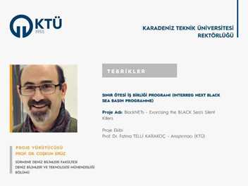 KTÜ’nün ortak olarak yer aldığı ve akademisyenler tarafından uluslararası fon destekli “Karadeniz Havzasında Sınır Ötesi İşbirliği Programı”na (Interreg NEXT Black Sea Basin Programme) 2023-2027 Çağrı Dönemi kapsamında sunulan; KTÜ Sürmene Deniz Bilimleri Fakültesi Deniz Bilimleri ve Teknolojisi Mühendisliği Bölümü Öğretim Üyesi Prof. Dr. Coşkun ERÜZ’ün “BlackNETs-Exorcising the BLACK Sea's Silent Killers” başlıklı projesi; Sürmene Deniz Bilimleri Fakültesi Deniz Bilimleri ve Teknolojisi Mühendisliği Bölümü Öğretim Üyesi Prof. Dr. Fatma TELLİ KARAKOÇ’un “Invasive Alien Species Observatory and Network Development for the Assessment of Climate Change Impacts and Contextual Ecosystem Services Evaluation in Black Sea Deltaic Protected Areas-IASON++” başlıklı projesi; Sürmene Deniz Bilimleri Fakültesi Denizcilik İşletmeleri Yönetimi Bölümü Öğretim Üyesi Prof. Dr. Kadir SEYHAN’ın “Cooperation and Awareness for Pollution-free and Environmentally Sustainable Black Sea, CARE SEA” başlıklı projesi ve Teknoloji Transferi Uygulama ve Araştırma Merkezi Öğretim Elemanı Öğr. Gör. Sedanur KALYONCU’nun yürütücülüğünü üstlendiği “T3N-BSB-Transnational Technology Transfer Network for Black Sea Basin” başlıklı proje başvurusu desteklenmeye hak kazandı.