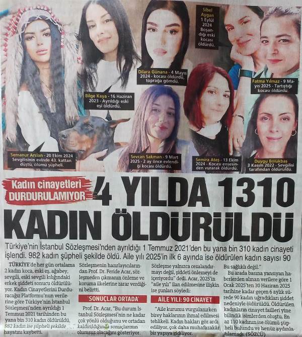 Hemen hemen her gün yaşanan kadın cinayeti ve şiddet vakalarının önüne geçilemiyor. Önceki gün sadece 24 saat içinde 6 kadının cinayete kurban gittiği ülkemizde son bir buçuk ayda 75 kadın eşleri yada eski erkek arkadaşları tarafından öldürüldü..