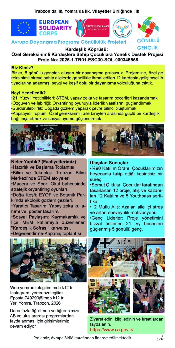 "Projemiz sadece okulumuzla sınırlı kalmamış; Yomra’daki 9 okulumuzda yaptığımız farkındalık ziyaretleri, hazırladığımız 'Duymak İstemediklerimiz' broşürü ve Trabzon AR-GE birimiyle yaptığımız iş birlikleriyle bir 'İyi Uygulama Örneği' haline gelmiştir".