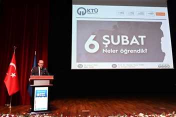 Protokolün, sergi alanını gezmesinin ardından saygı duruşu ve İstiklal Marşı’nın okunması ile başlayan panelin açılış konuşmasını gerçekleştiren KTÜ Rektörü Prof. Dr. Hamdullah ÇUVALCI “Aslında deprem öldürmüyor, binalar öldürüyor. Binalarımızı sağlam yapmalı, bilim ve teknolojiyi esas almalıyız. Üniversitemiz olarak deprem bölgesine yardım ulaştırabilmek noktasında, tüm ekibimiz ve öğrencilerimiz ile sabahlara kadar çalıştık. Depremin ikinci günü, Sivil Savunma ve Kurtarma ekibimizi, deprem bölgesine gönderdik. Bölgede gerçekleştirilen çalışmalara yardımcı oldular. Bunun yanı sıra Farabi Hastanesi’nden UMKE ekibi gitti. Özellikle İnşaat Mühendisliği Bölümü’nden hocalarımız acil olarak bölgeye gitti. Şu anda hala yüzlerce dosyayı inceliyorlar. Hocalarımızın verdiği raporlar, daha geçerli ve güvenilir. Bu nedenle kendilerine teşekkür ediyorum. Bunun yanı sıra Üniversitemizde ayni ve mali destek kampanyası başlattık. Bu noktada bizim milletimizin ne kadar alicenap bir millet olduğunu gördük.” dedi. Ardından sözü alan Trabzon Valisi Aziz YILDIRIM konuşmasında. “6 Şubat 2023 tarihinde Kahramanmaraş merkezli olarak yaşanan depremde çok sayıda insanımızı kaybettik. Binlerce insanın hayatını kaybetmesi, binlercesinin sakat kalması ve bu durumun yıllara yayılacak olan psikolojik, sosyolojik ve ekonomik boyutlu etkisi önümüzdeki dönemde toplumda daha çok hissedilecektir. Bu yıkıcı depremler bizleri, devlet ve toplum olarak afetler konusunda her an hazırlıklı olmamız gerçeğiyle bir kez daha yüz yüze getirmiştir. 11 ilimizde ağır bir yıkıma, on binlerce vatandaşımızın kaybına neden olan depremler, afet yönetiminin önemini bir kere daha ortaya koymuş oldu. Yaşadığımız büyük felaket, devlet ve millet olarak büyük bir fedakârlık ortaya koymamıza rağmen doğal afet öncesi ve sonrasında yapılması gerekenler konusunda hâlâ bazı eksikliklerimiz olduğunu, muhtemel afetler konusunda sürekli bir teyakkuz halinde olmamız gerektiğini bizlere bir kez daha göstermiştir.” sözlerine yer verdi.