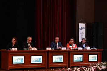 Program alanında uzman panelistlerin sunumlarıyla devam etti. Üniversitemiz Çevre Sorunları Uygulama ve Araştırma Merkezi Müdürü Prof. Dr. Dilek BEYAZLI moderatörlüğünde bir araya gelen AFAD İl Müdürü Jeoloji Mühendisi Ömer KIRATLI, Trabzon Afet Gönüllüleri Arama ve Kurtarma Derneği (TAKAT) Başkanı Berna KARA, Üniversitemiz Jeofizik Mühendisliği Bölümü’nden Dr. Öğr. Üyesi Özgenç AKIN ve Mimarlık Bölümü’nden AKUT Gönüllüsü Dr. Öğr. Üyesi Ayhan KARADAYI, 6 Şubat depremlerini enine boyuna tartışarak afetlere tam teşekküllü bir şekilde hazır olmak noktasında neler yapılabileceğini aktardı. Bu noktada, Trabzon Valiliği İl Afet ve Acil Durum Müdürü Ömer KIRATLI sunumunda, “Deprem sabahı hemen ekibimizi toparladık. Bir kısmını Adıyaman’a gönderdik, bizler de bir kısmıyla Osmaniye’ye giderek görevimizin başına geçtik. Bizler afeti tanımlarken kısaca toplumun, tek başına baş edemediği olaylara afet diyoruz. Afet çeşitlerinden biri olan jeolojik afetlerden bize en çok zarar vereni tabi ki deprem. Ülkemizde sel, heyelan, kaya düşmesi, çığ, yangın…vb. birçok afetin yanı sıra can ve mal kayıplarına en çok neden olan afet deprem. Ülkemizde 500 kadar aktif fayın olduğunu bilmeliyiz. Kahramanmaraş depremlerine geldiğimizde, 6 Şubat sabahı devlet olarak topyekûn bir şekilde harekete geçtik. 7.7 büyüklüğündeki ilk depremi, Trabzon’da hissettik ve ne kadar Sivil Toplum Kuruluşu varsa buradan harekete geçtik. Tabi 11 ilimize aynı anda yetebilmek için 2 milyon personele ihtiyacımız vardı ve bu mümkün değildi. Büyük depremlerin artçıları da bölgede hala sürmektedir. ” sözlerine yer vererek dirençli şehirler ve kentsel dönüşüm, temel afet bilincinin oluşturulması ve afetlere dayanıklı binaların taşıması gereken niteliklerin önemine vurgu yaptı.