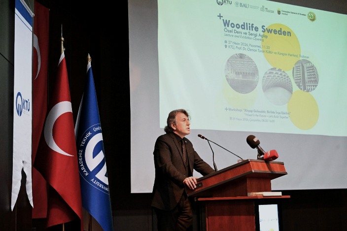 Rektör Prof. Dr. Hamdullah Çuvalcı konuşmasında, İsveç gibi Trabzon’un da ahşap yapı konusunda önemli bir birikime sahip olduğunu ifade ederek kentin özellikle yüksek kesimlerinde uygulanan ahşap yapı geleneğinin varlığını, güçlü bir şekilde sürdürdüğünü belirtti. Rektör Prof. Dr. Çuvalcı, Trabzon’un bu yönüyle hem iklim koşullarına uyumlu hem de yerel mimari hafızasını yansıtan özgün bir ahşap yapı kültürü ortaya koyduğunu vurguladı.