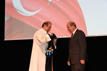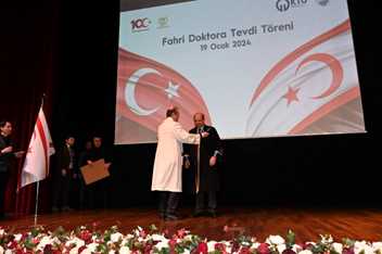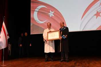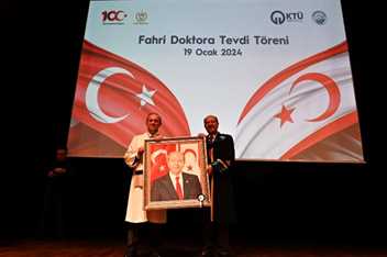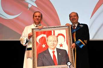 Konferansın ardından KKTC Cumhurbaşkanı Ersin TATAR’a, KTÜ Rektörü Prof. Dr. Hamdullah ÇUVALCI tarafından “Fahri Doktora (Onur Doktoru)” beratı ve kendisinin yağlı boya portresi takdim edildi. Program, hatıra fotoğrafı çektirilmesinin ardından sona erdi.