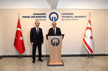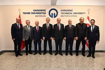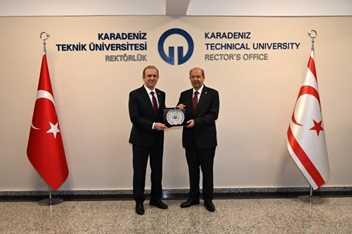 Kuzey Kıbrıs Türk Cumhuriyeti (KKTC) Cumhurbaşkanı Ersin TATAR, bir dizi temasta bulunmak amacıyla Trabzon’a geldi. Şehrimizde gerçekleştirdiği ziyaretlerin ardından “KKTC'nin Türk Dünyası İçerisindeki Stratejik Önemi” konulu bir konferans vermek üzere KTÜ’ye giden KKTC Cumhurbaşkanı, KTÜ Rektörü Prof. Dr. Hamdullah ÇUVALCI tarafından makamında ağırlandı.