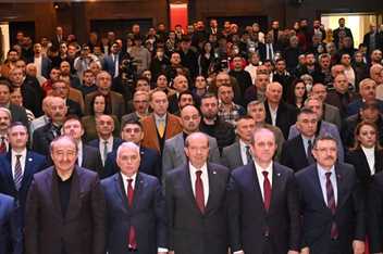 KKTC Cumhurbaşkanı Ersin TATAR, ele alınan konunun önemine vurgu yaptığı konuşmasında öncelikli olarak “Bugün, Trabzon’da, Karadeniz Teknik Üniversitesi’nde bulunmanın mutluluğu ve gururu içerisindeyim. Sayın Rektöre ve heyetine, bana bu onuru layık gördükleri için şahsım ve Kıbrıs Türk halkı adına teşekkür ediyorum.” sözlerine yer vererek “Anavatan, Yavru Vatan, Mavi Vatan dediğimiz bu coğrafyadaki varlığımızın temellerinin atıldığı Karadeniz’den Akdeniz’e bu coğrafyada hem milletimizin bekası, geleceği, varlığı için yapılanlarla bugün, bu onura ve milletin şanlı tarihinden omuzlarımızda bir emanet olarak aldığımız nilli hassasiyetleri sürdürebilmenin bahtiyarlığı ve mutluluğu içerisindeyiz. Bizleri taa tarihin derinliklerinden bağlayan bütün unsurlar, aynı milletin ayrılmaz ve kopmaz bir parçası olduğumuzun açık ve net ifadesidir. Bugün, bizlerin egemenliğindeki adanın geçmişine baktığımızda, Osmanlı’nın izlerini hem Kuzey Kıbrıs’ta hem de Güney Kıbrıs’ta görmekteyiz. Adadaki en uzun dönem, Osmanlı dönemidir. 350 yıl. Kıbrıs halkının, Kıbrıs Türkleri’nin mücadelesiyle bugünlerde artık 500. yılımızı kutlamak için plan ve program yapıyoruz. Çünkü KKTC, kalıcı olarak yoluna mutlaka devam edecektir.” dedi ve “Biz, süreçte hep Türkiye ile temas içerisinde olduk ve Türkiye’nin liderliğini, Büyük Önder Mustafa Kemal ATATÜRK’ün uyarıları doğrultusunda hareket ettik. Bugünlerde Mavi Vatan politikasında da bütün bu sürecin izleri vardır. Çünkü Anavatan ve Yavru Vatan, Mavi Vatan ile birlikte geleceğe daha güçlü bir şekilde yürüyeceğiz. Mavi Vatan’da KKTC’nin bağımsız bir devlet olarak kendi yetki alanları, kendi kara suları ile ekonomik münasebette bulunduğu bölge hakları ve kıta sahanlığı ile millet olarak bizlerin 400.000 km2 daha fazla hakkı bulunmaktadır.” şeklindeki ifadelerini de sözlerine ekledi.