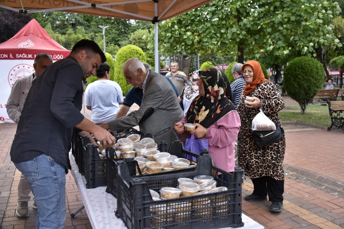 Akyazı Mahallesindeki aşure dağıtımı, 1800’lü yıllarda mahallede yaşayan ve kazanlarda pişirdiği aşureyi halka dağıtan Müderris Hafız Hanım anısına düzenlendi. Akyazı Kültür Derneği ve Ortahisar Kent Konseyi’nin öncülüğünde düzenlenen aşure dağıtım etkinliğine, Ortahisar Belediye Başkan Yardımcıları Mustafa Özer İskender ve Ernul Arslan, Sosyal Yardım İşleri Müdürü Toktamış Han Bahadır, Kültür ve Sosyal İşler Müdürü Saadettin Önsel, Akyazı Mahalle Muhtarı Erkan Akpınar ve mahalle sakinleri katıldı. Belediye Başkan Yardımcısı İskender, aşure geleneğinin yardımlaşma ve paylaşım duygularını geliştirmesi açısından çok değerli olduğunu ifade etti.