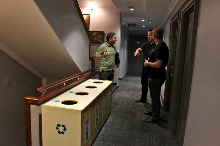 Otellere yönelik sıfır atık uygulamaları sırasında, atıkların ayrıştırılarak toplanması ve değerlendirilmesi süreçlerinde belediyenin destek sağlayacağı vurgulandı. Yapılan kontroller sırasında, Sıfır Atık Belgesi bulunmayan otellere belge alma zorunluluğu hatırlatılırken, belge alma süreçleri hakkında da yönlendirici bilgilendirmeler yapıldı.