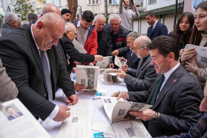 Açılış konuşmalarının ardından Belediye Başkanı Ahmet Kaya ve kitabı hazırlayan Mustafa Reşat Sümerkan, Fethi Yılmaz ve Ercan Yetimoğlu, ücretsiz dağıtılan kitabı vatandaşlar için imzaladı.