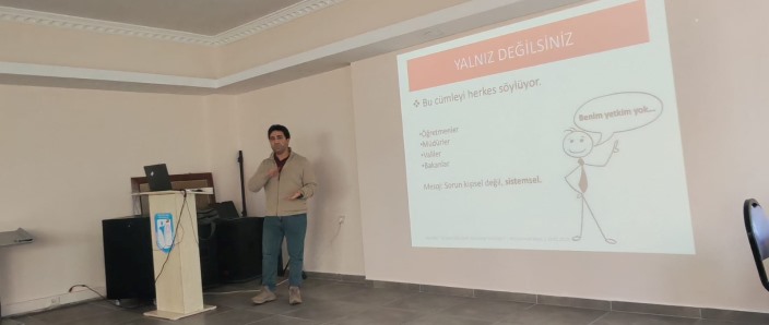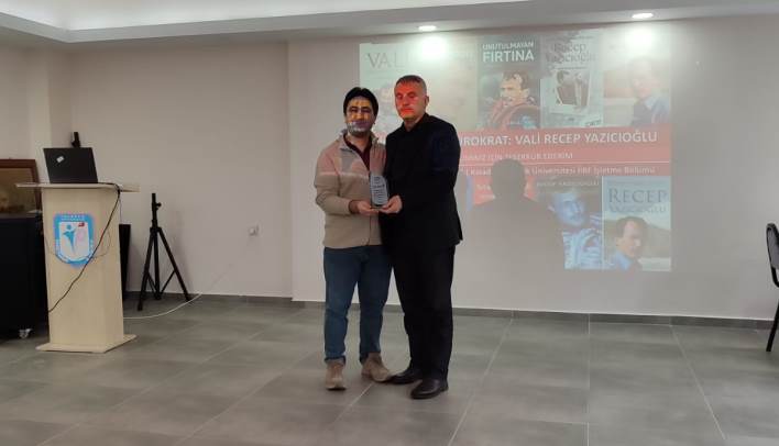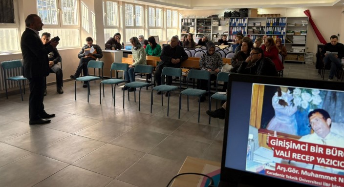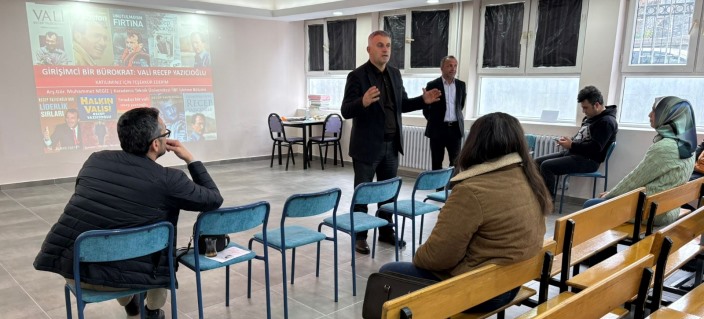 Merhum Recep Yazıcıoğlu’nun Tokat, Aydın, Erzincan, Merkez ve Denizli illerini kapsayan valilik dönemi olan 1985-2003 yıllarındaki faaliyetlerinin ele alındığı seminerde bir girişimci bürokratın hayatından alınabilecek dersler değerlendirildi. Araştırma Görevlisi Negiz’in merhum Vali’ye dair arşiv incelemeleri ve mülakatlar neticesinde ulaştığı bilgi ve belgeler öğretmenlere sunuldu.