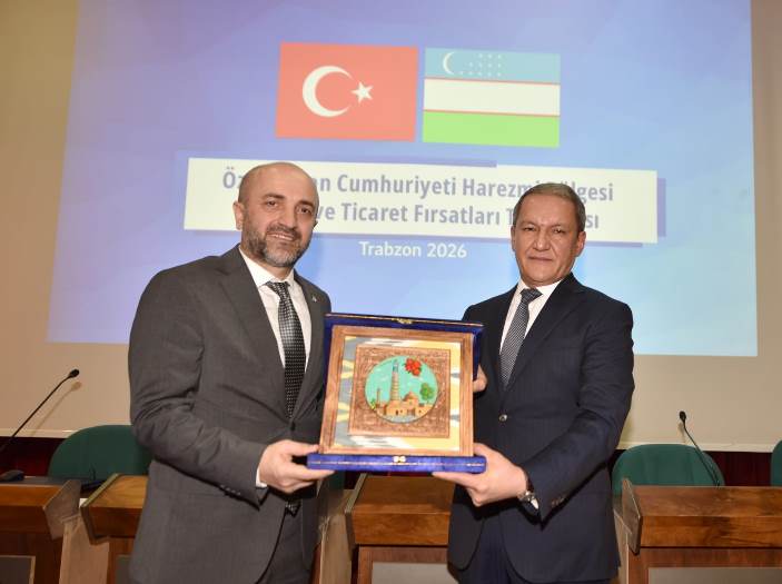 Harezm Valisi Jurabek Rakhimov da yaptığı konuşmada, Harezm Bölgesi’nin 3 bin yıllık tarihe sahip olduğunu ifade ederek, “Her yıl 3 milyonu yabancı olmak üzere 15 milyona yakın turist ağırlıyoruz. Taşkent’e bin kilometre uzaklıktayız ancak uylaşım sorunumuz yok. Yoğun bir uçak trafiğimiz ve mart ayından sonra hizmete girecek olan hızlı tren seçeneklerimiz var. Önemli yatırım fırsatları barındırıyoruz. 350 bin ton pamuk, 400 bin tona yakın buğday ve 1 milyon tonu aşan meyve sebze üretimimiz var. Eczacılık ürünleri talebin yüzde 20’sini karşılıyor. Yani yüzde 80’lik açık var. Bu alanda yatırım ve iş fırsatları bulunuyor. Tekstil ve inşaat sektörleri gelişmeye açık. OSB’ler hayata geçirildi. Altyapıyı devlet yapıyor, gümrük ve vergi indirimi sağlanıyor. Harezm bölgesinde 30’un üzerinde Türk yatırımcı var. Turizmi geliştirmek için biz de çalışıyoruz. Bu yıl Harezm’den haftada 7 gün İstanbul'a uçak olacak. İsteğimiz bu seferlerden birini de Trabzon’a koymak. Havalimanı kapasitemiz genişletiliyor. İlin valisi olarak iş yapmak isteyen Türk yatırımcıların önünü açmaya, yardım etmeye hazırım. Hepinizi turist ve yatırımcı olarak bekliyoruz. Tekstil, turizm, tarım, hayvancılık, inşaat, eczacılık, deri ve ayakkabı üretimi konularında yatırım fırsatları var. Bu toplantının ilişkilerimizi geliştirmekte önemli bir adım olduğuna inanıyorum” diye konuştu.