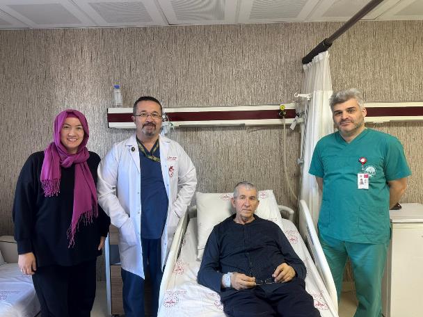 Kalp ve Damar Cerrahisi Anabilim Dalı Başkanı Doç. Dr. Sedat Ozan Karakişi yaptığı açıklamada “Hastamız 67 yaşında göğüs ağrısı nefes darlığı yorulma şikâyetleri ile polikliniğimize başvurdu. Yapılan tetkiklerinde aort kalp kapakçığı da kireçlenmeye bağlı ciddi derecede daralma saptamıştık ve kalp kapakçığının değişimine karar verdik. Yaşı ileri olduğu için biyolojik kalp kapağı tercih ettik.” dedi.