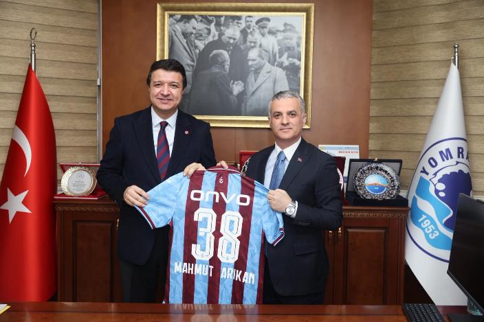 Ziyaretin sonunda Başkan Bıyık, Genel Başkan Arıkan’a 38 numaralı Trabzonspor forması ile Yomra’nın simgelerinden olan Yomra elması fidanı hediye etti. Ziyaret, hatıra fotoğrafı çekilmesiyle sona erdi.