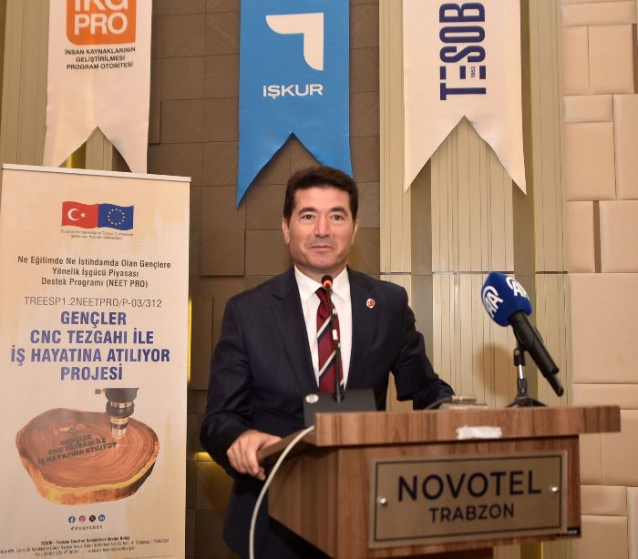 “Çünkü projemizin temelinde imalat var; projemizin temelinde işsiz gençlerimizi istihdama kazandırmak var, projemizin temelinde ilimiz ve ülkemiz turizmine, ekonomisine katma değer sağlayacak birçok çıktı var. Projemiz kapsamında KTÜ Orman Endüstri Mühendisliği Fakültesi’nde bir imalathane oluşturduk. İmalathanemize 2 adet lazer kesim makinesi, 1 adet UV baskı makinesi, 1 adet CNC makinesi ve çok sayıda küçük el aletlerinden oluşan makine ve ekipman alarak uygulamalı eğitimlerimizi bu alanda gerçekleştirdik. Kursiyerlerimiz bu makineler üzerinden ahşap hediyelik eşya ve hobi ürünleri imalatı yapma konusunda teorik eğitimler aldılar, uygulamalı eğitimler gerçekleştirdiler ve bu alanda staj programına katılarak öğrendiklerini uygulamaya koyma fırsatı yakaladılar. Bu süreçte projemizin uygulanması için bizlere yer tahsisinde bulunan KTÜ Rektörümüz Sayın Hamdullah Çuvalcı’ya ve KTÜ Orman Endüstri Mühendisliği dekanı ile öğretim görevlilerine çok teşekkür ediyorum.”