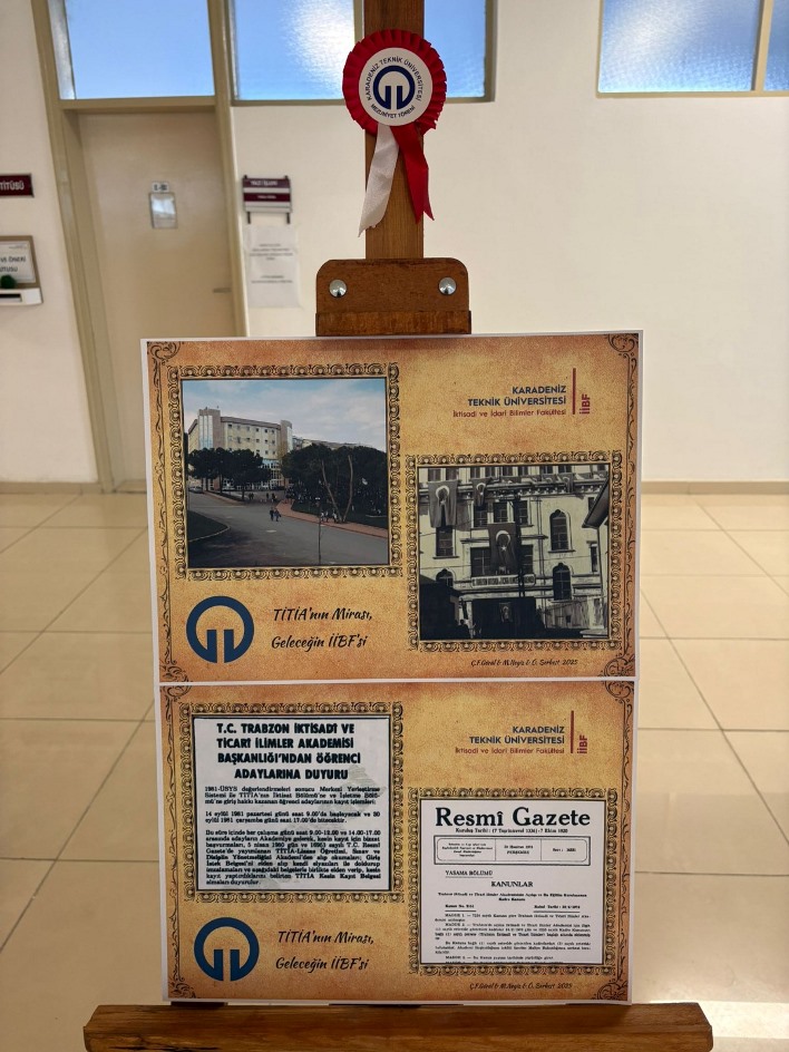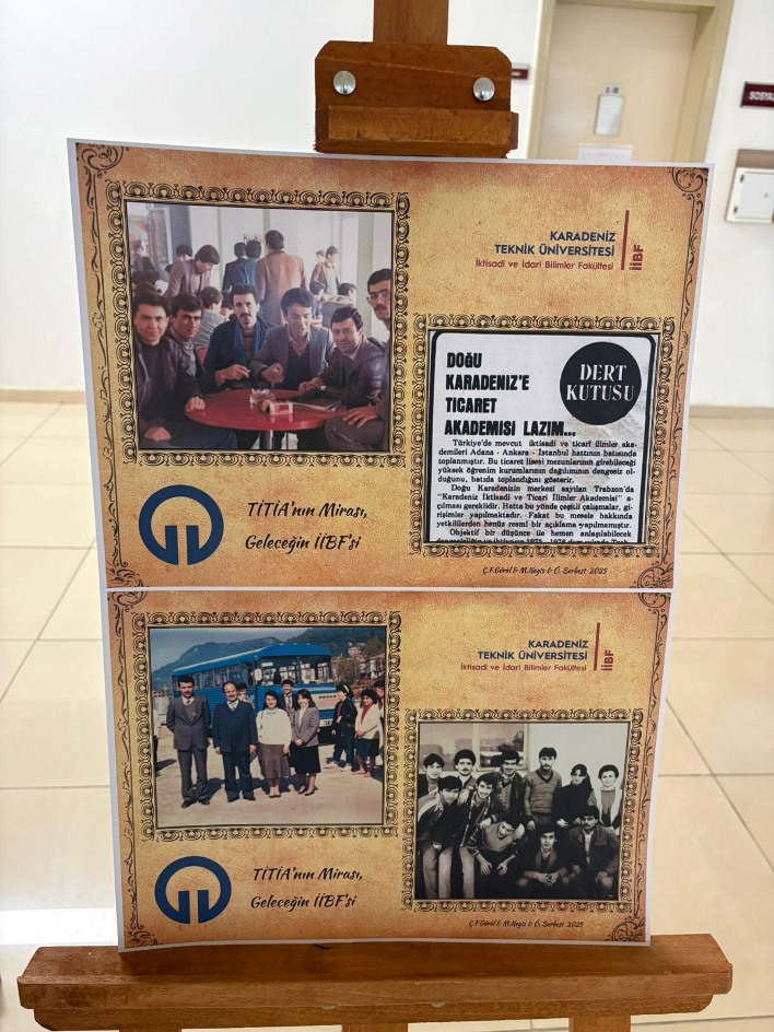 KTÜ İİBF Bilgi İşlem Sorumlusu Özgür SERBEST'in düzenlemeleri ve KTÜ İktisadi ve İdari Bilimler Fakültesi Sekreteri Çidem FETVACIOĞLU GÖRAL'ın katkılarıyla hazırlandı. KTÜ İktisadi ve İdari Bilimler Fakültesinin kuruluşuna kadar geçen sürede 1978 tarihinde Trabzon İktisadi ve Ticari İlimler Akademisi (TİTİA) çatısı altında faaliyetlerine başlaması ve 12 Eylül 1980 darbesi sonrasında İİBF'ye dönüştürülerek önce Karadeniz Üniversitesi (KÜ) ve sonra Karadeniz Teknik Üniversitesi (KTÜ) bünyesinde faaliyetlerine devam etmesinin hikayesini aktaran sergi bugün KTÜ Sosyal Bilimler Enstitüsü girişinde ziyarete açıldı. 18 Aralık 2025 tarihinden itibaren de KTÜ İİBF öğrenci girişinde görücüye çıkacak...